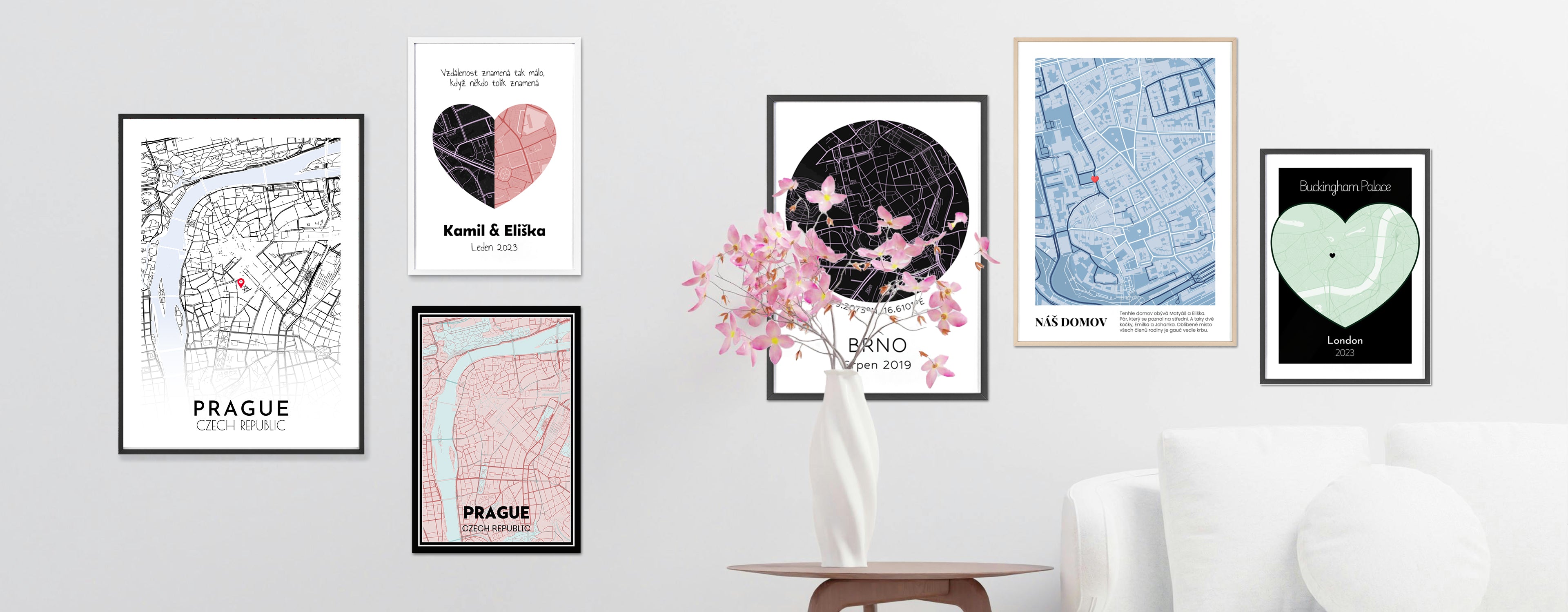 Máme spoustu různých stylů map. Romantické kolekce pro páry a novomanželé, cestovatelskou kolekci a nebo jen tak pro rodinu.